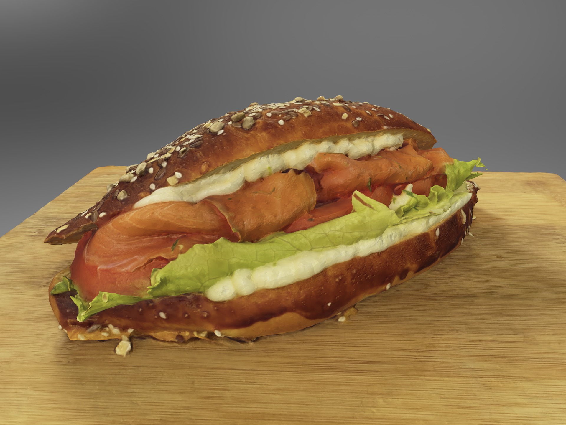 Uma deliciosa sandes de Salmão dos mares do norte em pão artesanal com sementes acompanhada de Alface Biológica e uma Maionese Caseira.